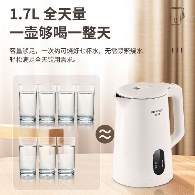 创维 星闪提示灯 304食品级不锈钢有缝内胆/无缝内胆 电热水壶烧水壶S221 1、1.7L超大容量 2、1500W急速加热 3、星闪提示灯 4、304食品级不锈钢有缝内胆/无缝内胆 兑换价格 2300 里程 会员卡别 终身白金卡 白金卡 金卡 银卡 普通卡 儿童卡 服务 由 九樱互动家电专营店 发货并提供售后 颜色: 白色 购买数量: 件 库存件 配送地址: 立即购买 加入购物车 成功添加到购物车 关闭 购物车共有 种商品 总金额为: 组合销售 产品介绍 产品规格 售后服务 产品咨询 发现好货 美菱/MELNG 电水壶304不锈钢烧水壶家用1.7L大容量米白色 MH-K79A 3000 里程 美的/Midea 电热水壶家用大容量烧水壶热水壶双层防烫电水壶304不锈钢内胆自动断电分离式拔盖 MK-SH15X1-102 3000 里程 小熊/Bear 电水壶家用烧水壶 不锈钢自动断电恒温热水壶保温一体电热水壶1.5L容量 3000 里程 美的/Midea 电水壶 1.7L热水壶电热水壶304不锈钢烧水壶净甜家用大容量开水壶智能自动断电双层防烫 MK-SH17M301 3200 里程 美的(Midea) 热水壶 304不锈钢电水壶 聚水环不溅烫1.7L大容量电热烧水壶 MK-SH17X103 3300 里程