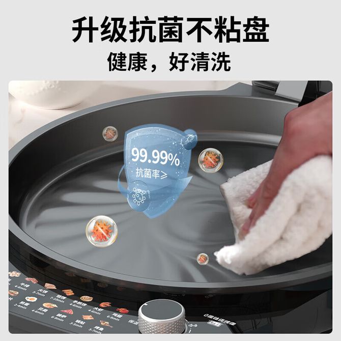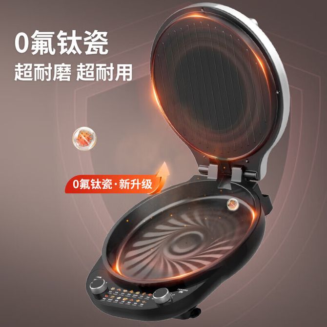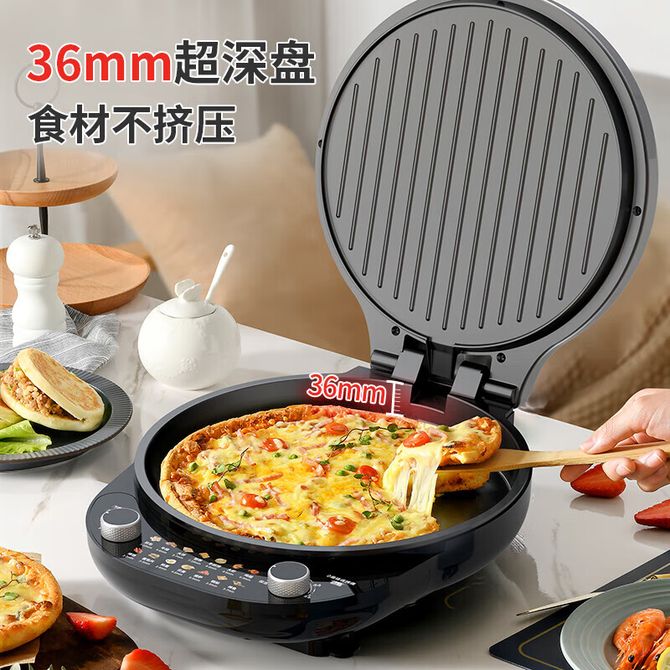 利仁 电饼铛家庭用36mm加深电饼档0氟钛瓷抗菌36规格加大烙饼锅电煎饼锅三明治早餐机烤肉锅LR-J3651 【0氟钛瓷】36mm抗菌深盘+调火LR-J3651