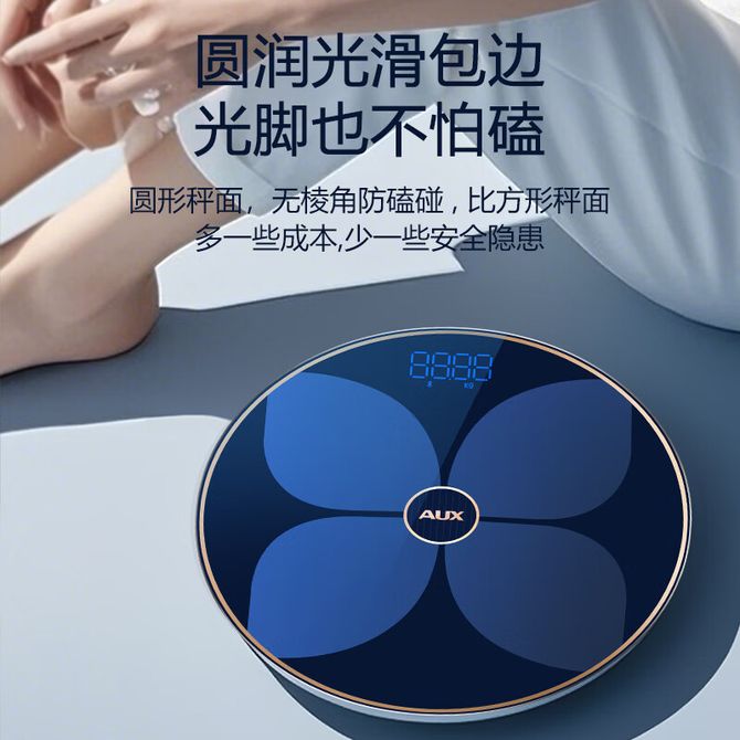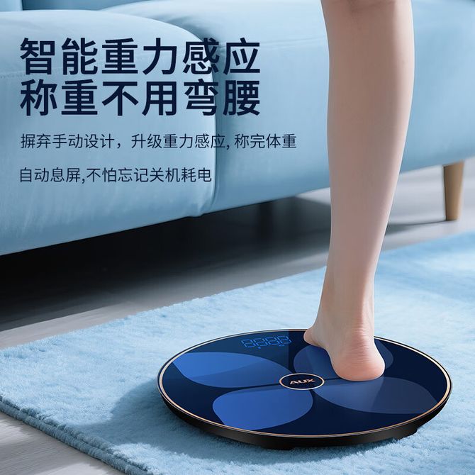 奥克斯/AUX 体脂秤ATZ-30D5C602【蓝色-充电款】家用圆形体重秤大秤面人体健康秤高精度蓝牙连接小程序充电式家用小型耐用精准电子秤
