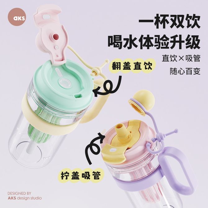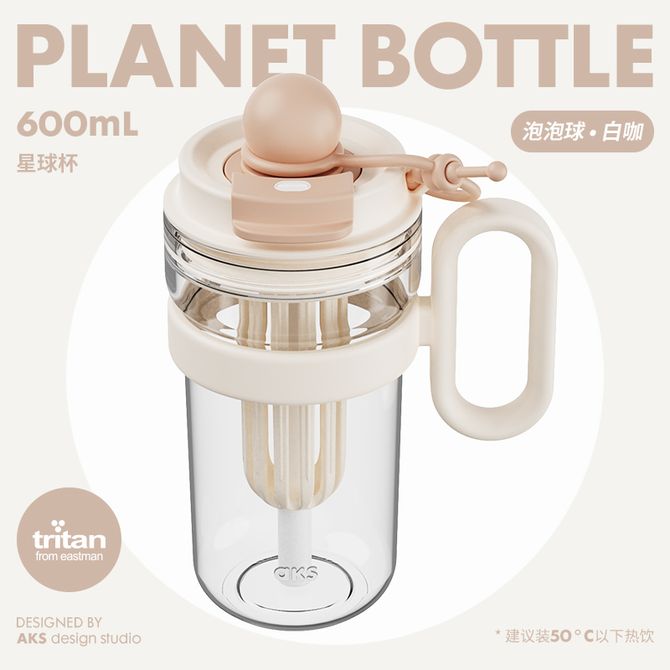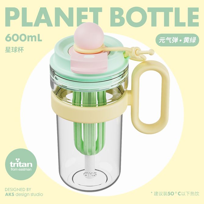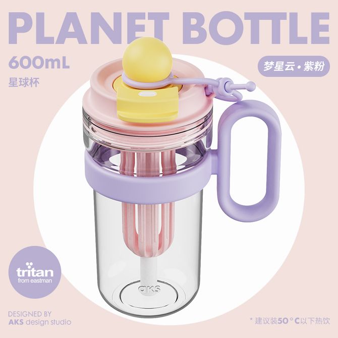 AKS 星球杯塑料水杯茶水分离吸管杯子便携实用带把手儿童水壶 600ml AKS675