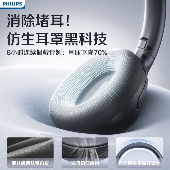 飞利浦(PHILIPS) 蓝牙耳机TAH2020【奶油白】头戴式耳机无线蓝牙AI通话降噪耳机骑行运动超长续航通话耳罩电竞游戏听歌