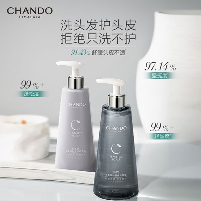 自然堂/Chando 强韧发丝防断发不扁塌舒缓头皮护理持久花香洗发露550mL