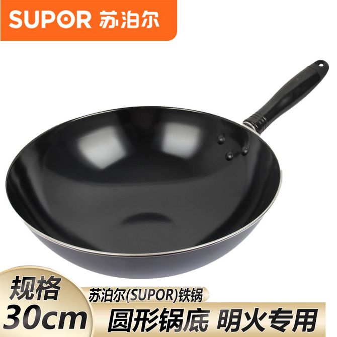苏泊尔(SUPOR) 炒锅30cm 家用炒菜锅无涂层搪瓷防锈铁锅明火燃气灶专用