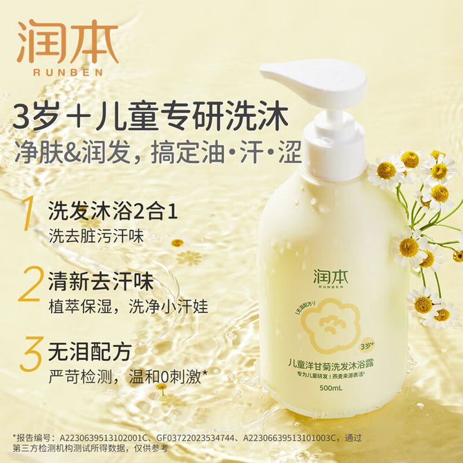 润本 儿童洋甘菊洗发沐浴露500ml 二合一宝宝专用泡泡温和无泪配方 3岁+适用 洗发沐浴,二合一 兑换价格 1300 里程 会员卡别 终身白金卡 白金卡 金卡 银卡 普通卡 儿童卡 服务 由 萌枢母婴专营店 发货并提供售后 洗护容量: 500ml 购买数量: 件 库存件 配送地址: 立即购买 加入购物车 成功添加到购物车 关闭 购物车共有 种商品 总金额为: 组合销售 产品介绍 产品规格 售后服务 产品咨询 发现好货 郁美净七果儿童洗发水沐浴露二合一550g无硅油2合1宝宝清爽泡泡浴 1500 里程 郁美净七果儿童洗发水沐浴露二合一550g*2瓶无硅油2合1宝宝清爽泡泡浴 2700 里程 青蛙王子(FROGPRINCE) 儿童洗发水 宝宝沐浴露 儿童洗发水沐浴露二合一 1100 里程 郁美净儿童花露水175ml*2瓶天然薄荷油多种植物精华香气清爽淡雅 1600 里程 郁美净儿童鲜奶洁发宝甜橙200g营养滋润宝宝洗发水儿童洗发露 1800 里程