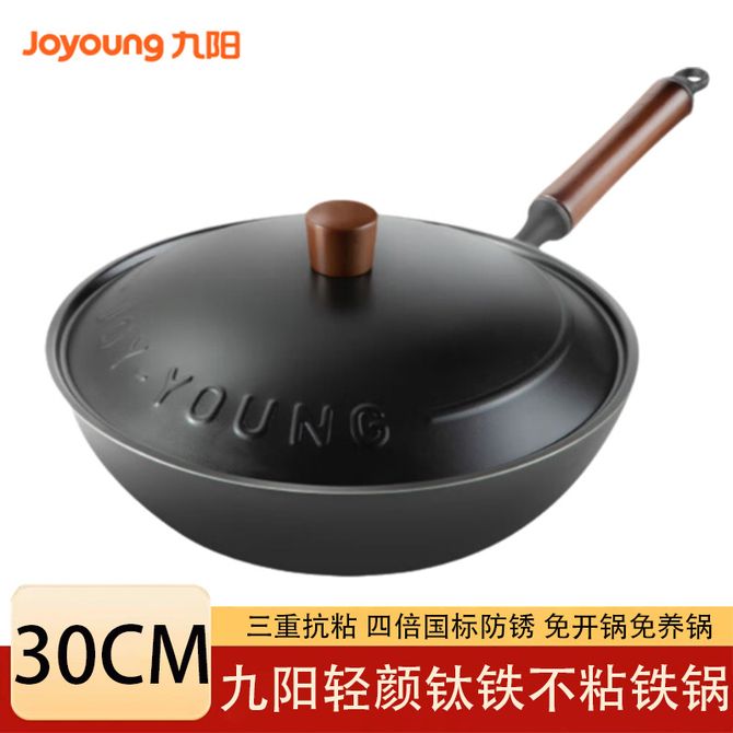 九阳/Joyoung 轻颜钛铁不粘铁锅 30CM家用三重抗粘四倍国标防锈厨房烹饪炒菜锅