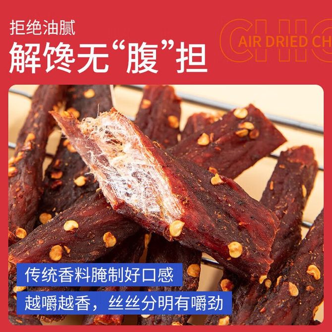 组合销售 产品介绍 产品规格 售后服务 产品咨询 发现好货 蒙都 风干牛肉干 500g (原味/五香/孜然/香辣)下单备注口味 新老包装随机 7000 里程 蒙都 酱牛肉200g*2袋 卤牛肉 熟食 内蒙古特产 五香真空包装熟牛肉 4100 里程 百草味 白芝麻猪肉脯100g 休闲零食肉干肉脯 1100 里程 百草味 原切牛肉片50g*1袋 牛肉干休闲零食 特产小吃肉干 1500 里程 三只松鼠(Three Squirrels) 蜀香牛肉麻辣味肉脯即食卤味牛肉 100gx2袋 1300 里程