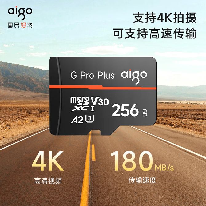 爱国者(aigo) TF(MicroSD)存储卡G PRO PLUS【512GB】 A2 V30兼容行车记录仪无人机运动相机 国产长江TLC颗粒读速180MB/s