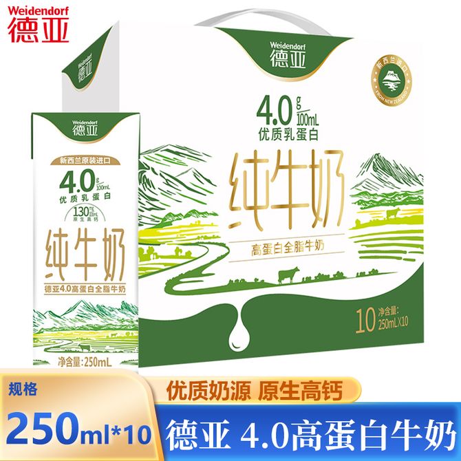 德亚/Weidendorf 4.0高蛋白牛奶250ML*10盒优质乳蛋白全脂牛奶纯粹香醇营养满满 新西兰原瓶进口,天然优质牧场奶源 兑换价格 2600 里程 会员卡别 终身白金卡 白金卡 金卡 银卡 普通卡 儿童卡 服务 由 壮乡优品生活馆 发货并提供售后 规格: 礼盒 购买数量: 件 库存件 配送地址: 立即购买 加入购物车 成功添加到购物车 关闭 购物车共有 种商品 总金额为: