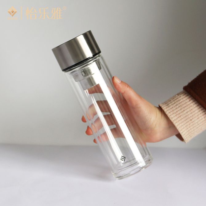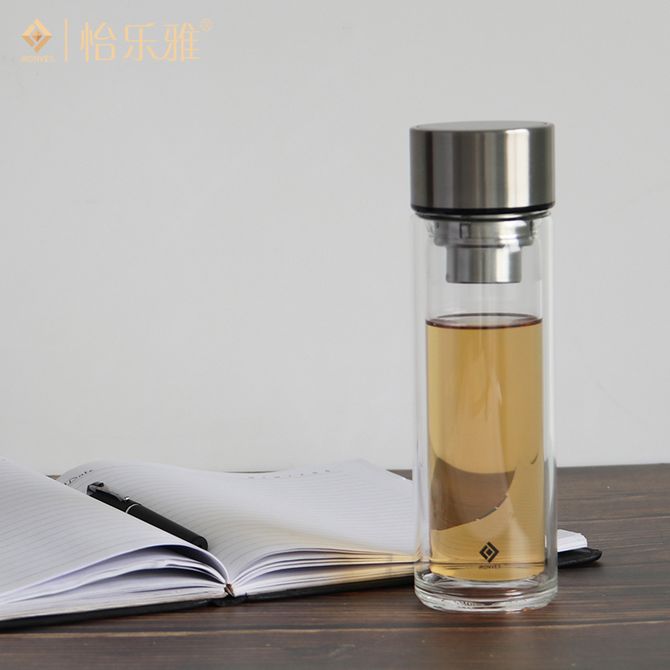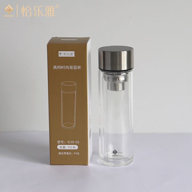 怡乐雅 双层茶水分离玻璃杯隔热茶杯高档商务水杯 透明350ml YLYS-C3
