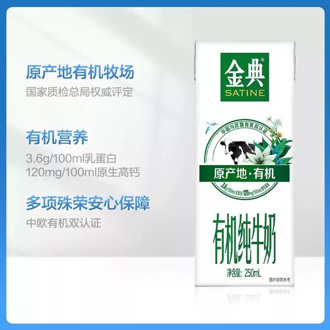 伊利 1箱250ML金典有机16盒装纯牛奶 金典有机 营养健康 兑换价格 3000 里程 会员卡别 终身白金卡 白金卡 金卡 银卡 普通卡 儿童卡 服务 由 南美进口馆 发货并提供售后 规格: 组合 购买数量: 件 库存件 配送地址: 立即购买 加入购物车 成功添加到购物车 关闭 购物车共有 种商品 总金额为: 组合销售 产品介绍 产品规格 售后服务 产品咨询 发现好货 蒙牛 特仑苏纯牛奶苗条装250ml×12盒 2900 里程 三元 经典小方白全脂纯牛奶250ml*24盒牛奶 整箱 3400 里程 伊利金典纯牛奶250ml*12盒整箱 2200 里程 伊利 金典纯牛奶整箱 250ml*12盒 3.6g乳蛋白 原生高钙 礼盒装 1800 里程 特仑苏 新日期纯牛奶250ml*12盒 3.6g乳蛋白 礼盒装 京东/顺丰发货 2400 里程