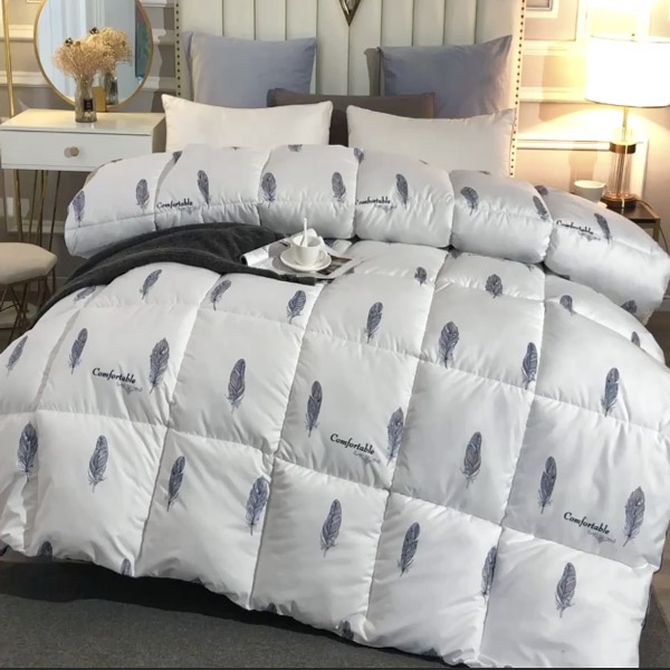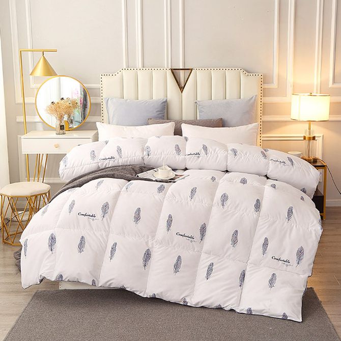 规格:200*230cm 填充:60%鸭绒+40%聚酯纤维 面料:印花仿羽布(聚酯纤维) 重量:2.9kg