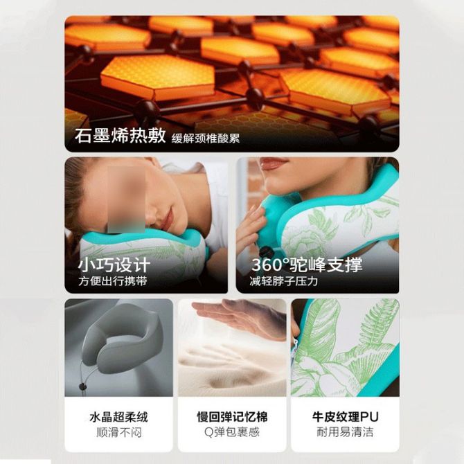 小巧设计,360°驼峰支撑,水晶超柔绒,慢回弹记忆棉,牛皮纹理PU
