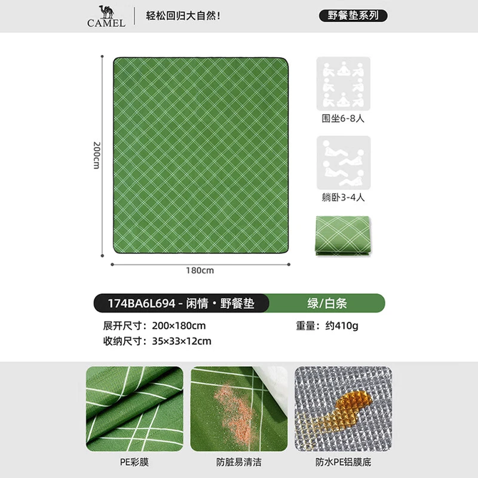 骆驼/Camel 加厚春游垫帐篷地垫睡垫户外露营儿童坐垫 174BA6L694 绿色 加厚春游垫 帐篷地垫睡垫 兑换价格 3000 里程 会员卡别 终身白金卡 白金卡 金卡 银卡 普通卡 儿童卡 商品已下架 1. 请联系卖家咨询 2. 逛逛威嘉宏户外馆选择其他商品 组合销售 产品介绍 产品规格 售后服务 产品咨询 发现好货 创悦 防潮垫 户外便携加厚绒面双层野餐垫 1.5*2米 CY-5826小树叶 2200 里程 徽羚羊 户外防水牛津布2*2M野餐垫防潮垫帐篷内垫子地垫儿童爬爬垫 1500-2700 里程 探险者(TAN XIAN ZHE) 超声波野餐垫户外防潮垫加厚野餐布野炊露营郊游防水地席垫 【三层加厚】自然迷宫2m*2m 3000 里程 创悦 铝膜防潮垫 户外便携式野餐垫 三人帐篷用 2*2米 CY-5823 1700 里程 尙烤佳 野营垫便携防潮垫 星辰牛津布野餐垫 3500 里程