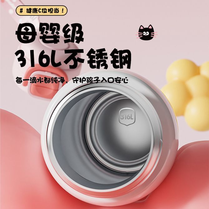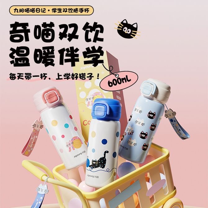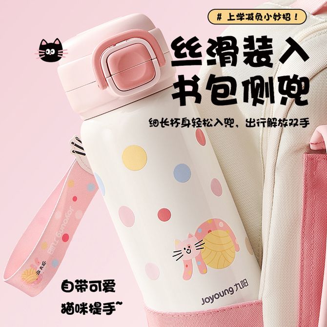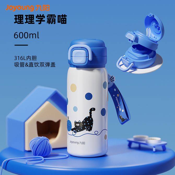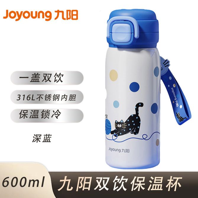 九阳/Joyoung 保温杯儿童高颜值316L不锈钢水杯子600ml 大容量学生直饮吸管杯喝水壶 深蓝