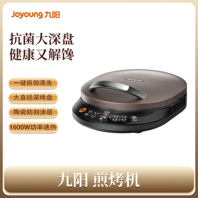 九阳/Joyoung 煎烤机 家用多功能电饼铛双面加热大烤盘一键可拆洗大直径深烤盘煎烤机烙饼机