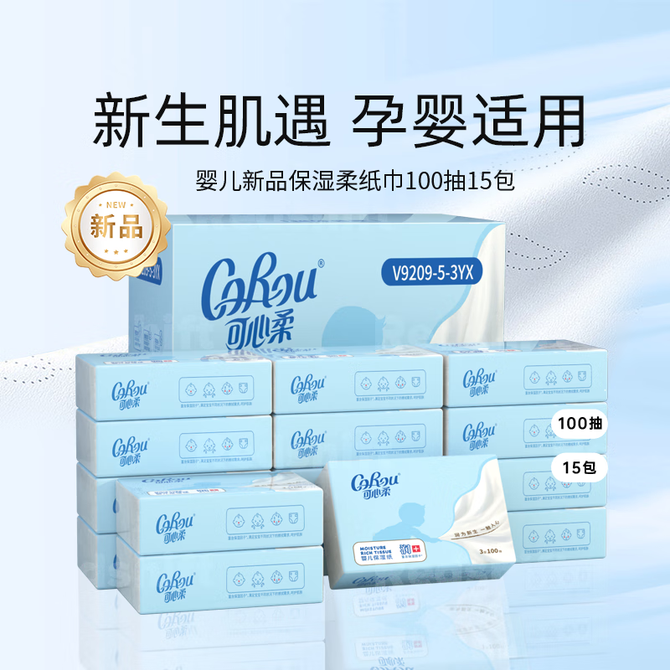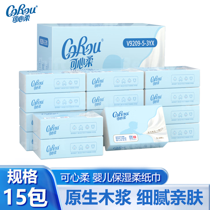 可心柔 婴儿柔纸巾抽纸3层100抽15包柔润保湿面巾纸