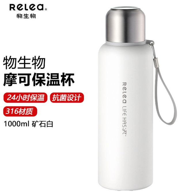 物生物(RELEA) 摩可保温杯 1000ml矿石白 茶水分离保温杯316不锈钢男女士泡茶杯户外旅行便携保温瓶