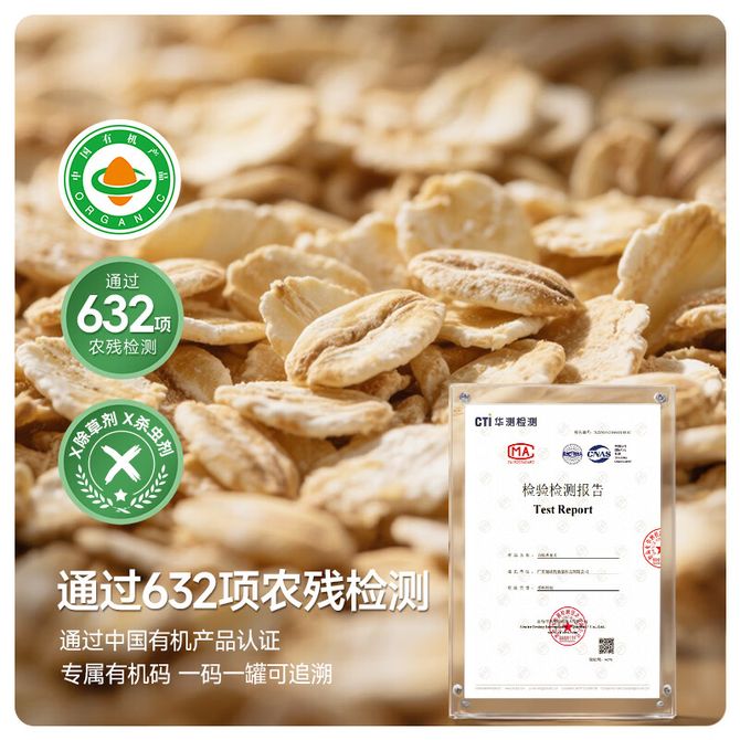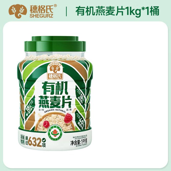 穗格氏SHEGURZ 有机燕麦片1000g/罐 无添加蔗糖 即食麦片冲饮谷物营养早餐