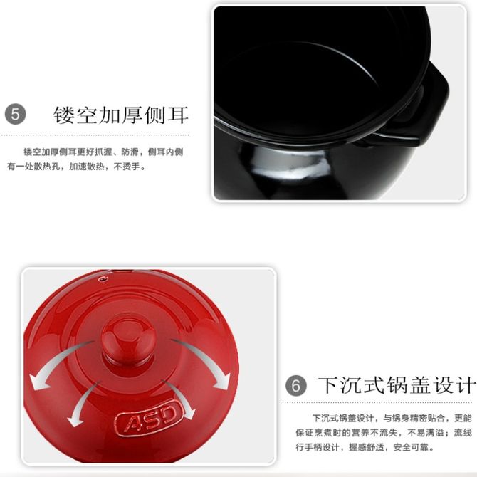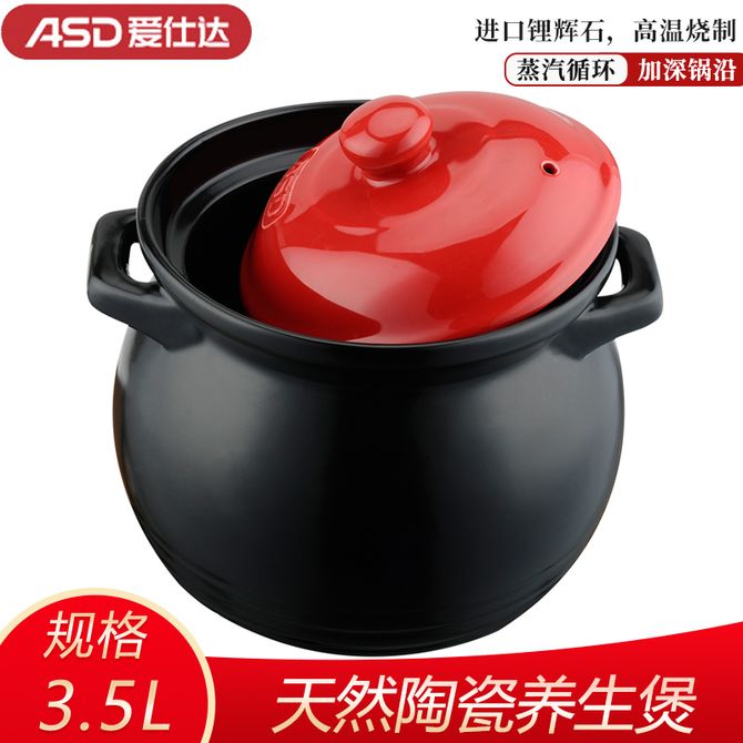爱仕达/ASD 天然陶瓷养生煲3.5L进口锂辉石冷热交替不开裂安心使用 锂辉石+天然陶土高温烧制,骤冷骤热不开裂 兑换价格 4800 里程 会员卡别 终身白金卡 白金卡 金卡 银卡 普通卡 儿童卡 服务 由 众生缘(江苏)互联网科技有限公司 发货并提供售后 颜色: 其他 购买数量: 件 库存件 配送地址: 立即购买 加入购物车 成功添加到购物车 关闭 购物车共有 种商品 总金额为: 组合销售 产品介绍 产品规格 售后服务 产品咨询 发现好货 荣事达/Royalstar 煲锅 砂锅煲汤熬药煮粥焖饭砂锅陶瓷炖汤沙锅家用养生汤锅瓦煲瓦罐4.6L 3900 里程 爱仕达(ASD) 煲锅 砂锅煲汤炖锅2.5L陶瓷煲仔饭砂锅燃气灶明火专用 4800 里程 炊大皇/Cookerking 砂锅5L耐高温陶瓷煲多用炖锅汤锅家用养生煲陶瓷锅明火煤燃气灶专用TCXW5002 4400 里程 炊大皇/Cookerking 砂锅 6L耐高温陶瓷煲多用炖锅汤锅 家用养生煲陶瓷锅 明火煤燃气灶专用TCXW6003 5300 里程 苏泊尔(SUPOR) 砂锅煲汤锅炖锅4.5L养生煲耐高温不开裂陶瓷煲EB45MAT01 6000 里程