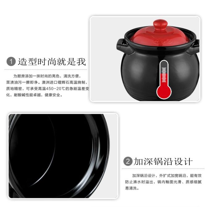 组合销售 产品介绍 产品规格 售后服务 产品咨询 发现好货 荣事达/Royalstar 煲锅 砂锅煲汤熬药煮粥焖饭砂锅陶瓷炖汤沙锅家用养生汤锅瓦煲瓦罐4.6L 3900 里程 爱仕达(ASD) 煲锅 砂锅煲汤炖锅2.5L陶瓷煲仔饭砂锅燃气灶明火专用 4800 里程 炊大皇/Cookerking 砂锅5L耐高温陶瓷煲多用炖锅汤锅家用养生煲陶瓷锅明火煤燃气灶专用TCXW5002 4400 里程 炊大皇/Cookerking 砂锅 6L耐高温陶瓷煲多用炖锅汤锅 家用养生煲陶瓷锅 明火煤燃气灶专用TCXW6003 5300 里程 苏泊尔(SUPOR) 砂锅煲汤锅炖锅4.5L养生煲耐高温不开裂陶瓷煲EB45MAT01 6000 里程