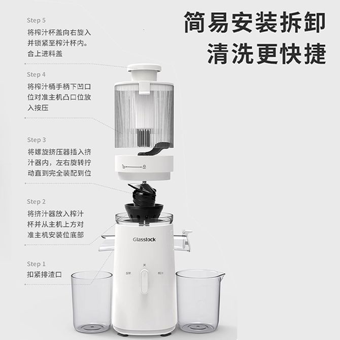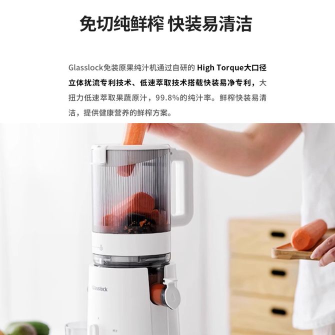 GLASSLOCK 原汁机家用渣汁分离纯果汁榨汁机全自动水果蔬菜免切无滤网好清洗