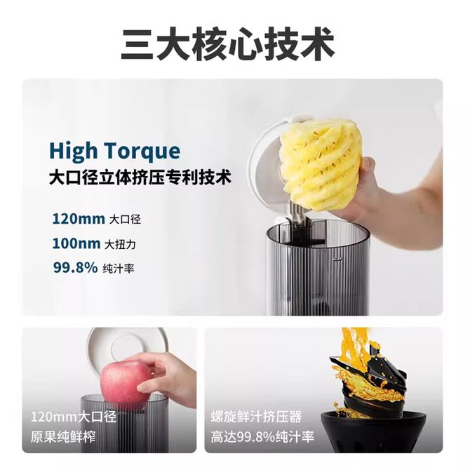 120mm口径大件蔬果免切鲜榨 6段挤压 无网结构