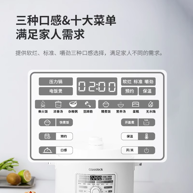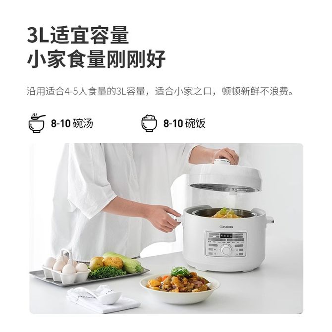 盖朗/Glasslock 电饭煲 高压锅智能电饭锅 家用多功能煲汤锅3升0涂层304不锈钢