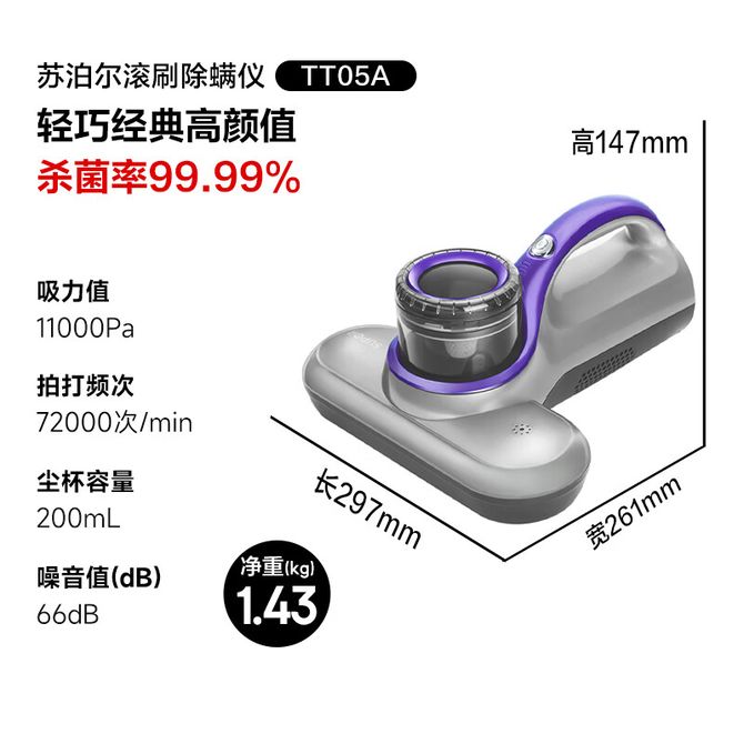 苏泊尔(SUPOR) 除螨仪TT05A 吸尘器大吸力吸尘神器 床宝双杯尘螨分离家用床上除螨虫紫外线杀菌礼物送礼