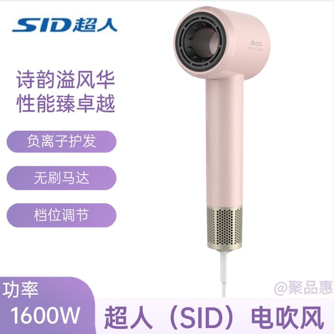 超人/SID 家用电吹风机1600W水润负离子大风量速干便携简约吹风筒旅行用电吹风 粉色 档位调节选择合适的温度 四层隔热杜绝高温隐患 兑换价格 5700 里程 会员卡别 终身白金卡 白金卡 金卡 银卡 普通卡 儿童卡 服务 由 聚品惠家电生活馆 发货并提供售后 颜色: 其他 购买数量: 件 库存件 配送地址: 立即购买 加入购物车 成功添加到购物车 关闭 购物车共有 种商品 总金额为: