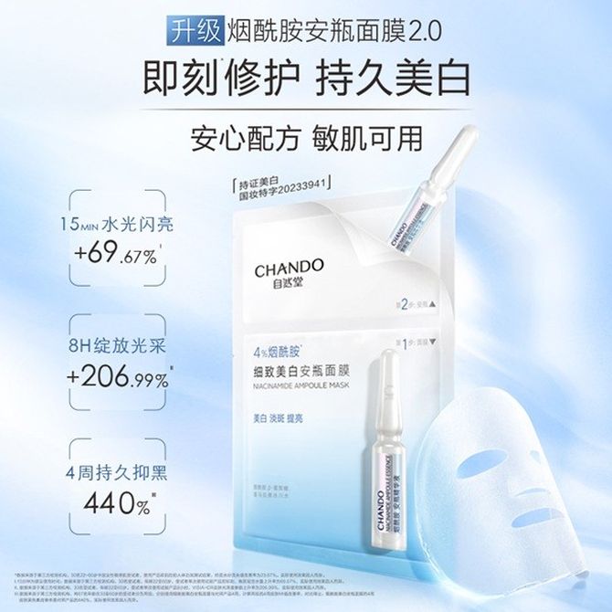 自然堂/Chando 4%烟酰胺 细致美白安瓶面膜5片装 美白淡斑提亮改善泛红敏肌 兑换价格 2100 里程 会员卡别 终身白金卡 白金卡 金卡 银卡 普通卡 儿童卡 服务 由 视通无限个护化妆专营店 发货并提供售后 面膜规格: 盒 购买数量: 件 库存件 配送地址: 立即购买 加入购物车 成功添加到购物车 关闭 购物车共有 种商品 总金额为: