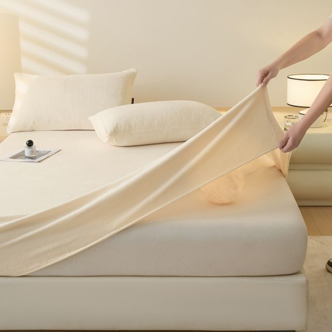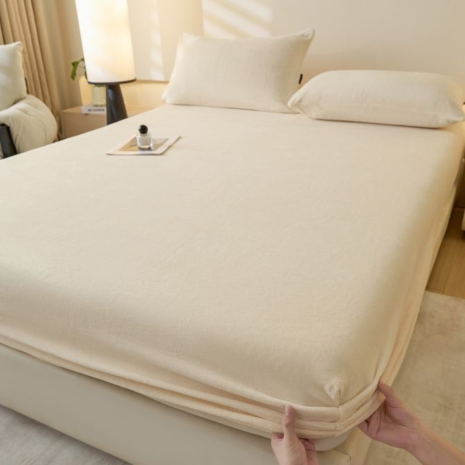 逸轩/yixuan 秋冬牛奶绒床笠 绒床笠奶黄 亲肤耐用久洗如新