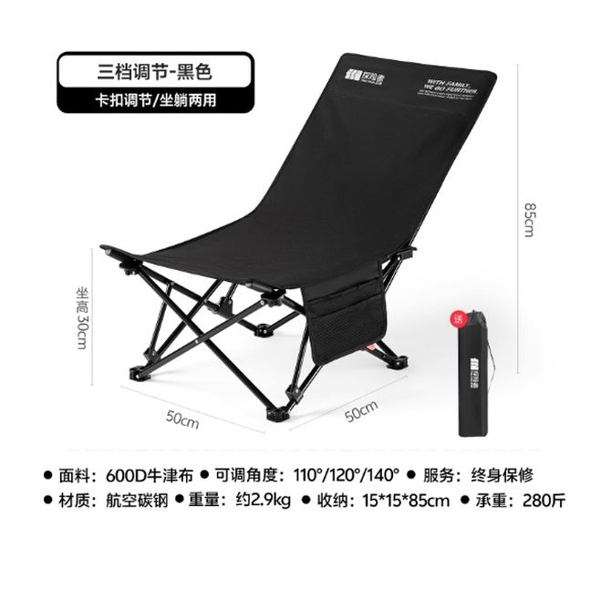 探险者(TAN XIAN ZHE) 户外折叠椅 户外靠背椅子 黑色 三挡可调