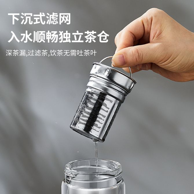 食品级高硼硅玻璃材质 无惧骤冷骤热 加厚杯体 304不锈钢材质的下沉式滤