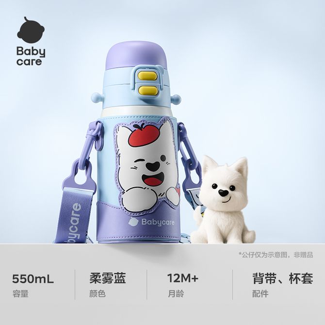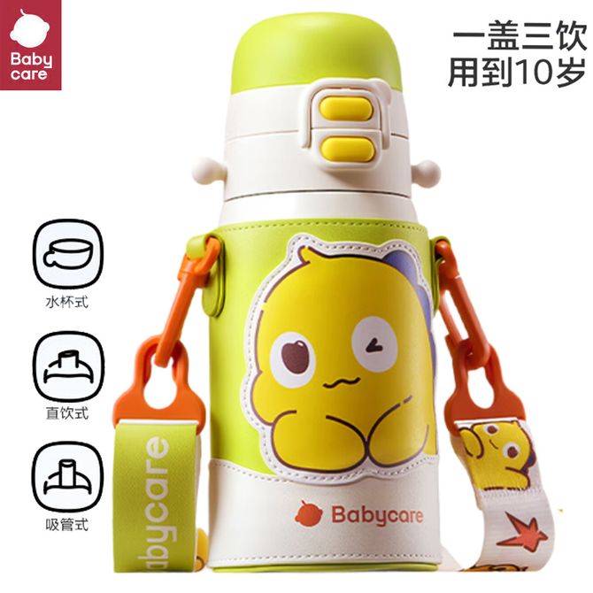 babycare 免换盖儿童三饮保温杯宝宝吸管杯316L不锈钢【带杯套】550ml-颜色随机可备注