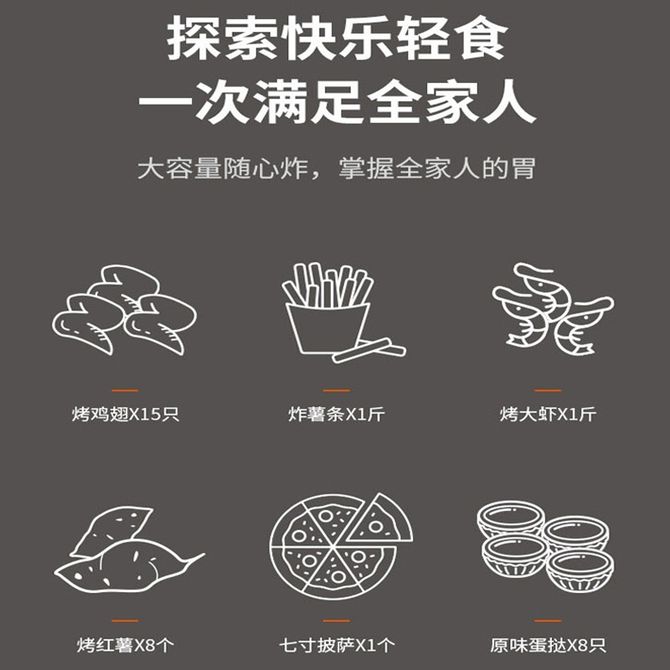 环形可视窗 高温无油烹炸 5L大容量 分区双旋钮 蒸汽嫩炸 自动断电保护