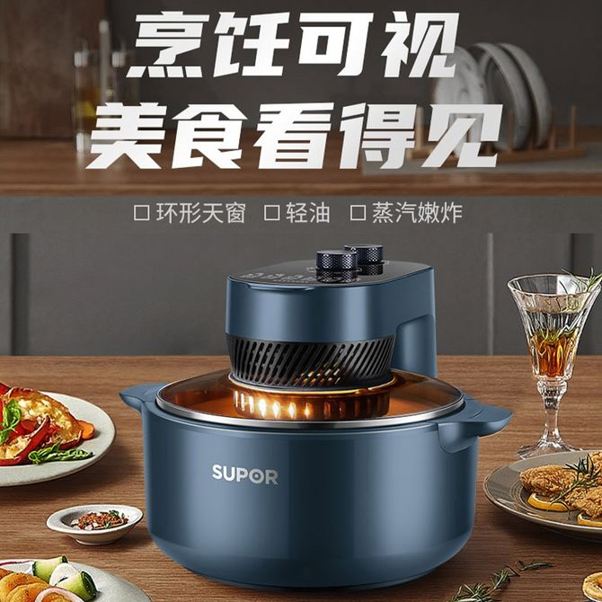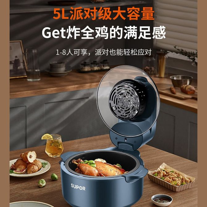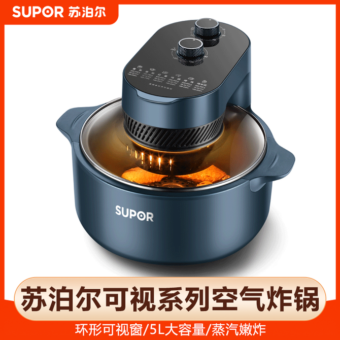 苏泊尔(SUPOR) 空气炸锅家用5L大容量可视空气炸锅免翻面1200W大火力电炸锅蒸汽嫩炸冷热风循环加热