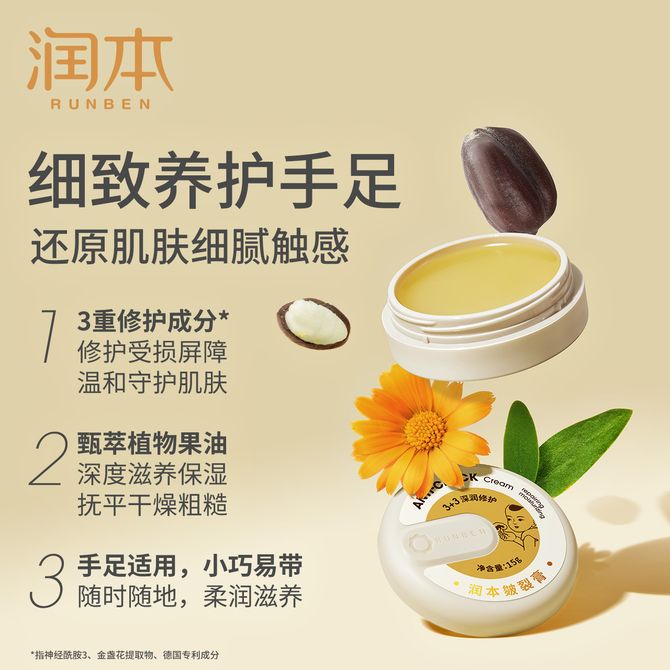 润本 皴裂膏脚后跟干裂修护霜15g龟裂手脱皮起皮皲裂脚裂滋润补水保湿(AX)