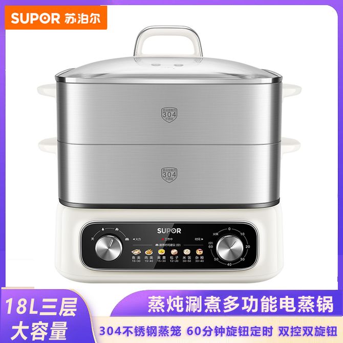 苏泊尔(SUPOR) 家用蒸炖涮煮多功能电蒸锅 18L三层大容量 电热锅电蒸笼304不锈钢蒸笼蒸菜热菜蒸螃蟹蒸包子 蒸炖涮煮多功能电蒸锅 304不锈钢蒸笼 60分钟旋钮定时 双控双旋钮 18L三层大容量 兑换价格 16100 里程 会员卡别 终身白金卡 白金卡 金卡 银卡 普通卡 儿童卡 服务 由 广西自贸区京通桂达科技发展有限公司 发货并提供售后 颜色: 其他 购买数量: 件 库存件 配送地址: 立即购买 加入购物车 成功添加到购物车 关闭 购物车共有 种商品 总金额为: 组合销售 产品介绍 产品规格 售后服务 产品咨询 发现好货 苏泊尔(SUPOR)空气炸锅 家用多功能4.2L大容量 烤箱薯条机 无油烟电炸锅 大功率 无油低脂煎炸锅KJ42D811 6500 里程 苏泊尔(SUPOR)空气炸锅家用3L大容量电炸锅 蒸汽嫩炸多功能无油烟煎炸薯条机烤箱KD30DQ815 21700 里程 美的/Midea 空气炸锅 家用5升可视炸锅金属内腔体微蒸汽多功能智能双旋控温电炸锅 KZE5089 10900 里程 美的/Midea 空气炸锅 可视 不用翻面 金属内腔 蒸汽嫩炸 三档烘烤风力 5L KZC5089 10700 里程 小熊/Bear 空气炸锅 4D漩烤不用翻面 全自动 5L实用大容量 可视 蒸汽嫩炸 控油脱脂 炸烤箱一体机 9100 里程