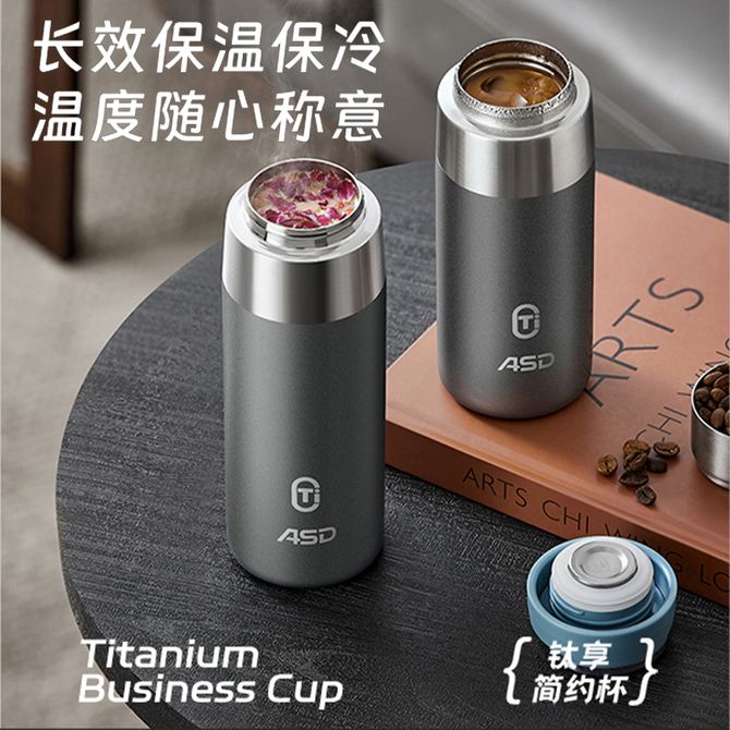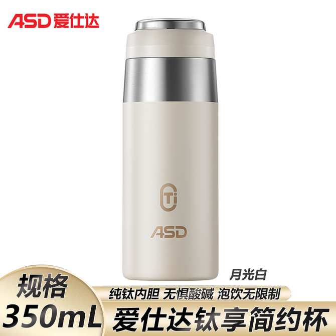 爱仕达/ASD 纯钛内胆真空保温杯350ml容量钛享简约杯内胆纯钛保温杯男女士真空保温杯月光白