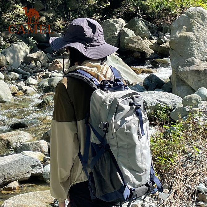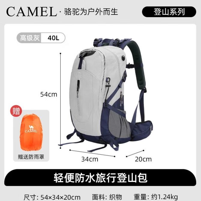 骆驼/Camel 户外运动登山包防水背包休闲旅行徒步爬山双肩包旅游包书包男女 574D373627,灰,40L 轻量升级版 轻感背负