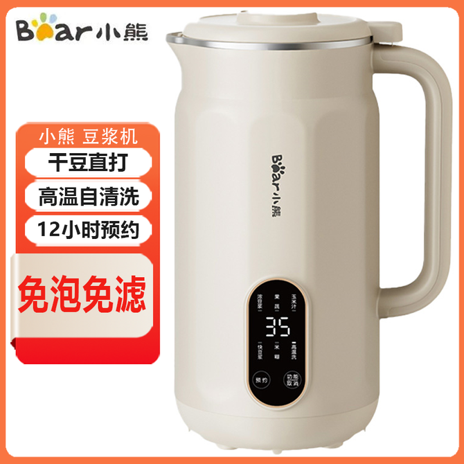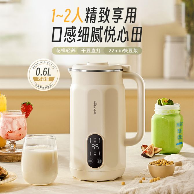小熊/Bear 豆浆机600ml干豆直打料理机破壁机家用小型豆浆机免泡免滤触控操作