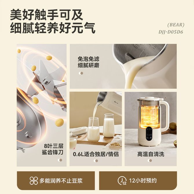免泡免滤 干豆直打 高温自清洗 12小时预约