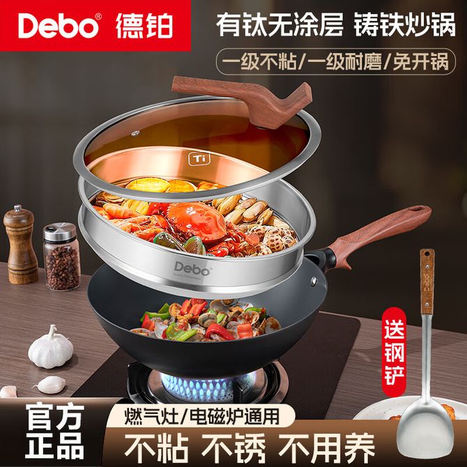 Debo 德铂 钛铸铁锅 含钛真不锈 无涂层 炒锅+蒸格+锅盖+铲 30cm DEP-DS487 兑换价格 21700 里程 会员卡别 终身白金卡 白金卡 金卡 银卡 普通卡 儿童卡 服务 由 人人余厨具专营店 发货并提供售后 颜色: 黑色 购买数量: 件 库存件 配送地址: 立即购买 加入购物车 成功添加到购物车 关闭 购物车共有 种商品 总金额为: 组合销售 产品介绍 产品规格 售后服务 产品咨询 发现好货 苏泊尔 炫彩易洁不粘炒锅 NC30F4 8700 里程 苏泊尔(SUPOR) 臻火蜂窝铁锅32cm 家用无涂层老式熟铁炒锅平底煎炒锅锅具 3400 里程 拜格(Bayco) 平底炒锅煎蛋锅平底锅锤纹小铁锅BG50137【28cm】 1900 里程 德世朗(DESLON) 无涂层炒锅铁锅可视化盖龙鳞0氟精铁不粘炒锅32cm炒菜锅炉灶通用 黑色 3500 里程 炊大皇/Cookerking 炒锅 30cm+盖子 无涂层聚油爆炒精铁锅炒菜锅电磁炉燃气通用锅具精铁锅 3900 里程