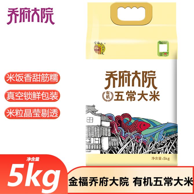 金福乔府大院 有机五常大米5kg稻花香2号有机认证家庭煮饭优质大米