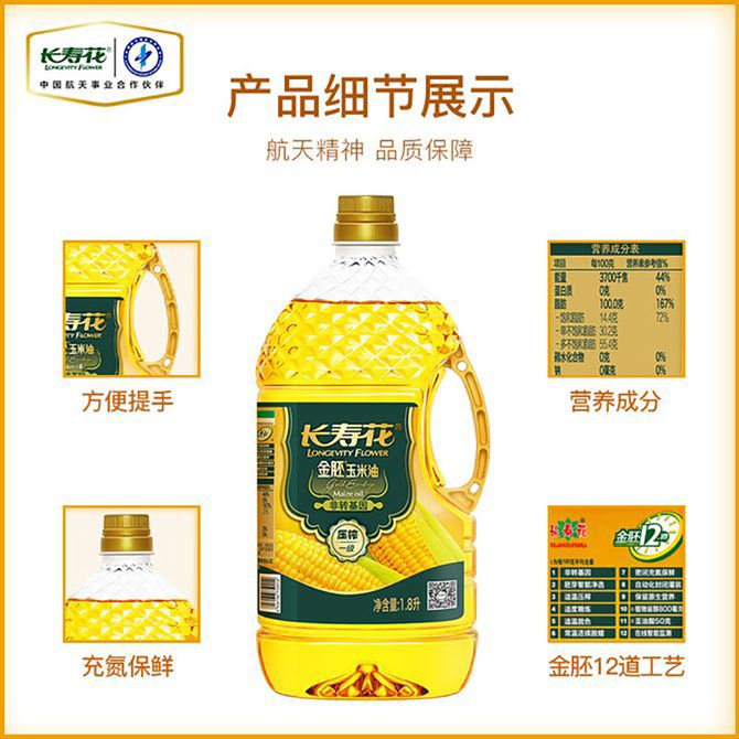 长寿花LONGEVITY FLOWER 金胚玉米油1.8L 非转基因压榨一级植物胚芽油 绿色食品油 质透亮色泽金黄 九颗金胚芽 一滴长寿花 兑换价格 2000 里程 会员卡别 终身白金卡 白金卡 金卡 银卡 普通卡 儿童卡 服务 由 清益食品专营店 发货并提供售后 油品规格: 1.8L 购买数量: 件 库存件 配送地址: 立即购买 加入购物车 成功添加到购物车 关闭 购物车共有 种商品 总金额为: 组合销售 产品介绍 产品规格 售后服务 产品咨询 发现好货 长寿花 金胚玉米油食用油非转基因压榨一级 1.8L 2200 里程 珍佰粮菜籽油5L 5500 里程 福临门 一级大豆油900ML/瓶 优质家用食用油 1100 里程 福临门 家香味食用油 沂蒙土榨 花生仁油900ml 1600 里程 金龙鱼 浓香花生油5L 大桶装物理压榨一级厨房烹饪炒菜植物油粮油家庭食用油 浓香花生油食用油 5000 里程