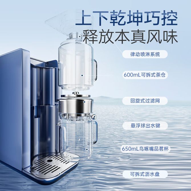 泡煮双萃 泡茶|煮茶|热水 律动喷淋系统 双倍加热效能,此款为蓝色