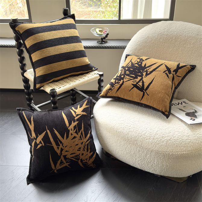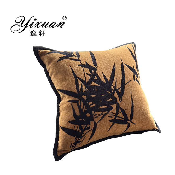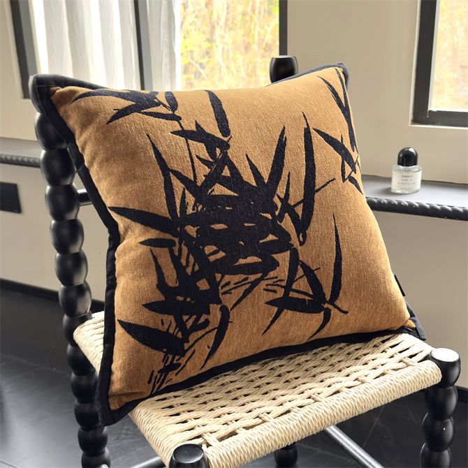 逸轩/yixuan 高品质沙发抱枕靠垫 宽边黄底竹子 客厅轻奢质感抱枕靠垫
