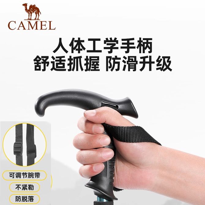 骆驼/Camel 登山杖手杖铝合金轻便伸缩折叠徒步爬山拐棍防滑碳纤维拐杖 红色 4639