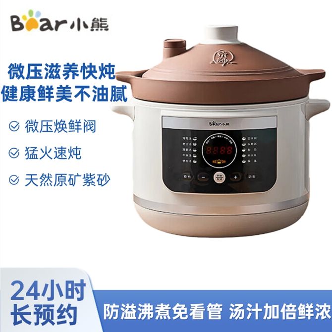 小熊/Bear 电炖锅电砂锅 电炖盅 炖汤盅煲汤锅 紫砂锅煲汤电炖锅 天然原矿紫砂不施釉、不上色 24小时预约滋养不用等 兑换价格 10400 里程 会员卡别 终身白金卡 白金卡 金卡 银卡 普通卡 儿童卡 服务 由 聚品惠家电生活馆 发货并提供售后 颜色: 其他 购买数量: 件 库存件 配送地址: 立即购买 加入购物车 成功添加到购物车 关闭 购物车共有 种商品 总金额为: