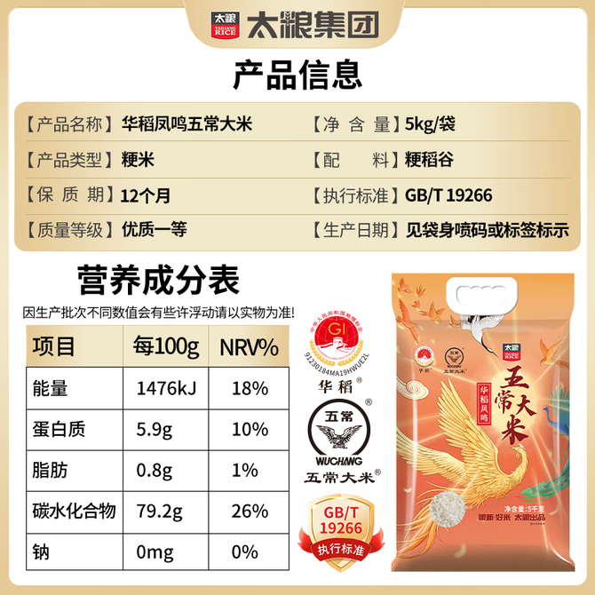 太粮TAILIANG RICE 太粮华稻凤鸣 五常大米 长粒香米 当季新米粳米 东北大米 真空5kg【正宗五常】 正宗五常大米 兑换价格 2900 里程 会员卡别 终身白金卡 白金卡 金卡 银卡 普通卡 儿童卡 服务 由 优米酷食品专营店 发货并提供售后 规格: 袋装 购买数量: 件 库存件 配送地址: 立即购买 加入购物车 成功添加到购物车 关闭 购物车共有 种商品 总金额为: